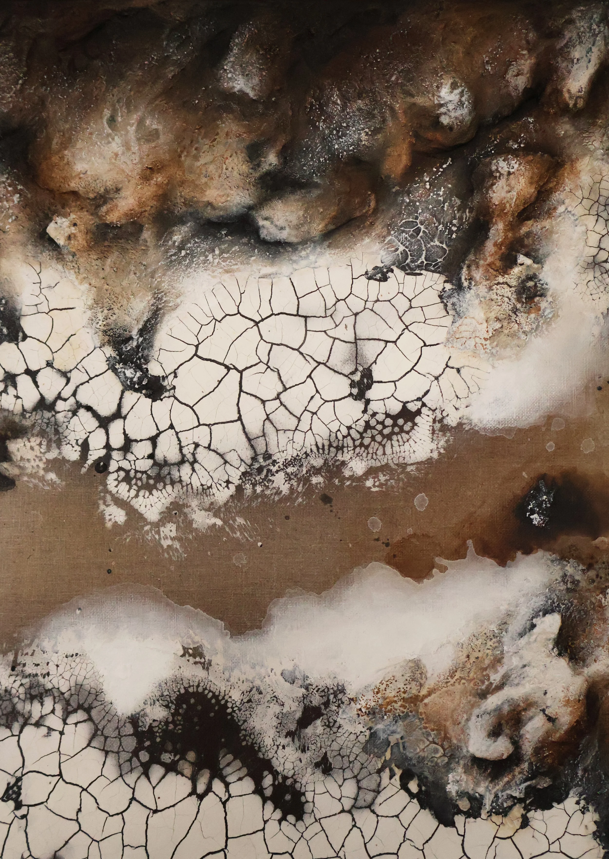 Þegar ég byrjaði að mála í seinni tíð tók mamma eftir því að málverkin mín og formfræði minntu mjög á krúsindúllurnar sem ég teiknaði hálfsjónlaus sem barn. Sennilega kemur þessi formfræði einhvers staðar djúpt innan frá mér.